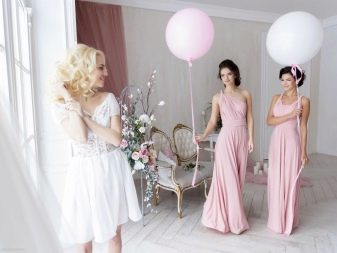 No només es pot fotografiar una núvia durant el camp d’entrenament. Una opció interessant pot ser una sessió fotogràfica amb les dames d’honor: aquests trets agraden no només a la núvia, sinó també als seus amics íntims. En aquest cas, les imatges d’amics no han de sortir de l’estil general del que passa. Val la pena considerar els vestits de les núvies, els seus pentinats, si no, després, hauràs de mirar entre tots els ulls de l’heroi de l’ocasió entre tots.