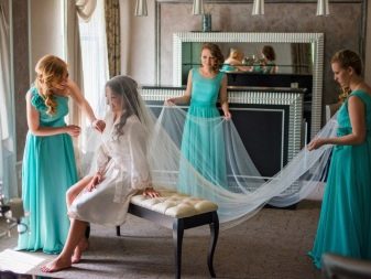 És costum treure el procés de vestir un vestit de núvia. Aquests marcs són tendres, emotius, i els encaixos i teixits lleugers, els veluts delicats crearan la sensació d’un autèntic miracle. Aquest és el veritable moment de convertir la noia en una princesa.