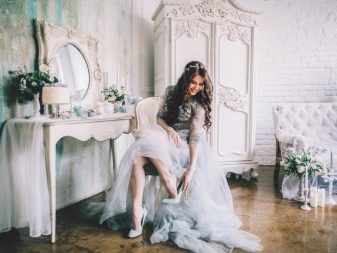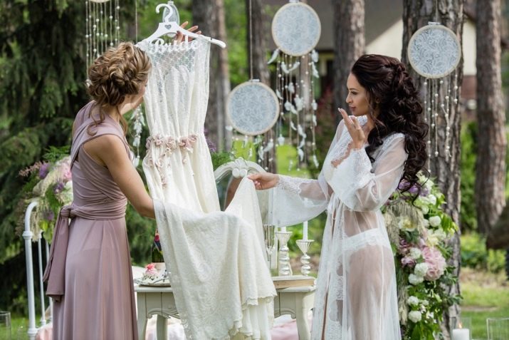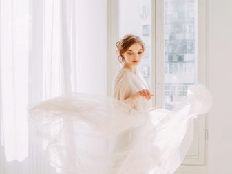 Si la núvia s’avergonyeix de certes parts del seu cos, es plega sobre l’estómac i els costats, un peignoir ben escollit amagarà els defectes i posarà l’accent en els avantatges de la figura. La roba adequada pot presentar la núvia a la llum més favorable.