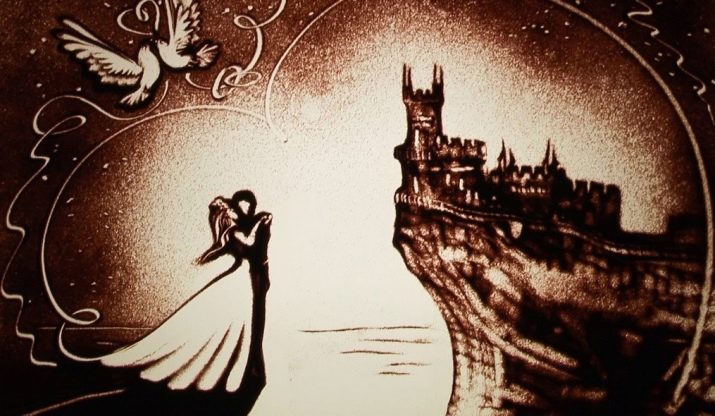 Per cert, si els nuvis tenen la seva pròpia cançó amb la qual es connecta el seu conegut o un altre esdeveniment significatiu de la seva relació romàntica, es pot fer una imatge a la sorra només per a aquesta composició.
