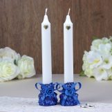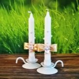 Serà més convenient encendre un foc amb pals llargs i prims, per la qual cosa el millor és no triar espelmes arrissades ni massa petites per als pares. No eleveu la decoració, és millor limitar-vos a la part inferior de l’accessori, ja que les espelmes fines cremen més ràpidament i les cintes sintètiques i el plàstic són molt inflamables. Les espelmes tallades a l’obra semblen boniques, però són molt difícils de fer sense l’experiència adequada. El millor és comprar aquests blancs ja tallats i decorar-los vosaltres mateixos.