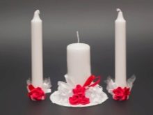 La fràgil llum, il·luminada al crepuscle, dóna un moment de trepidància i misteri, segons convé un ritual com aquest. Hi han de participar almenys 3 espelmes: una per als joves i una altra per als pares de la núvia. A més, podeu distribuir petites espelmes als convidats, moltes llums parpellejants que il·luminen la parella seran un fons excel·lent per a fotos memorables. Tot i que no hi ha normes estrictes per a la compra d’atributs, hi ha algunes recomanacions que es tenen en compte millor a l’hora de comprar.