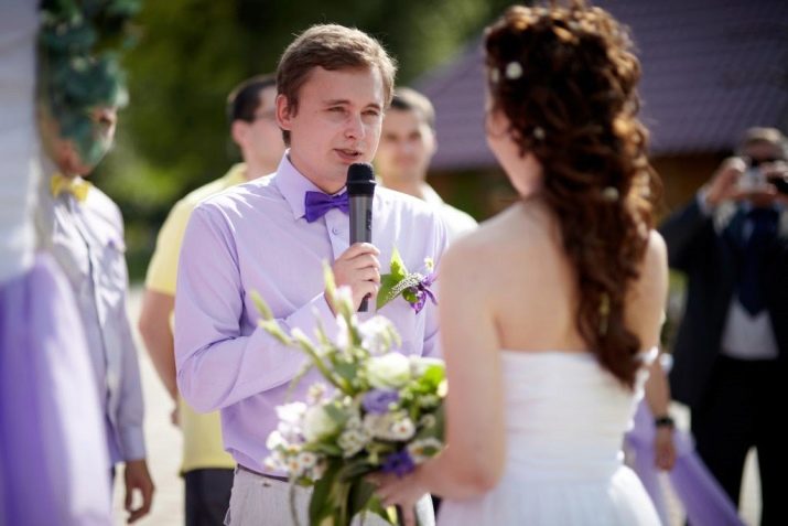 El casament sol respondre una persona especialment contractada per a això, que es diu amfitrió. Cada líder pot tenir les seves pròpies idees sobre les complexitats del ritual cerimonial, però, el principi general de la seva conducta continua sent el mateix. Els pares de joves són convidats al centre de la sala, a qui s’entreguen dues llargues espelmes retorçades. El dret a la llum d'un fogar familiar es dóna tradicionalment a les mares, ja que en la cultura tradicional, la preservació del confort i la calor a casa és un paper femení.