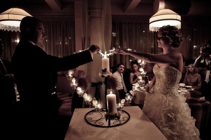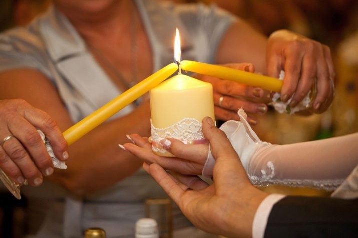 Al mateix temps, els pares poden contribuir a la cerimònia en curs durant l’encesa d’aquestes espelmes. Els homes coincideixen o més lleugers encenen les metxes i passen les espelmes a les mans femenines. Les mares de la núvia i el nuvi s’uneixen a les espelmes més grans i passen foc d’elles, fent foc a la metxa.