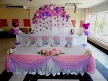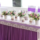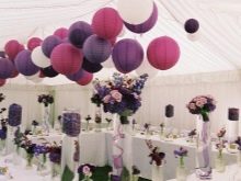 Decorar l’habitació on es farà la celebració en tons morats és una molt bona idea. El fons del casament, a saber, el lloc on seran els nuvis, es pot decorar amb una bella cortina feta de teixits delicats i airejats. Una gran quantitat de colors seleccionats és brillant, però no sempre bonica i elegant.