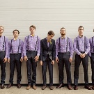 Si la núvia estarà en un vestit clàssic, el nuvi hauria de triar la versió clàssica de la jaqueta de núvia. I com a accessori brillant, una corbata, un mantó de butxaca amb una tonalitat morada és adequat per harmonitzar amb la seva estimada. Si la núvia només utilitza un clip de pèl com a detall brillant, el nuvi hauria de triar un forat del botó de la mateixa ombra.