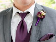A més, el nuvi pot triar una armilla de qualsevol de les tonalitats morades, que harmonitzarà perfectament amb un vestit blanc o beix. El més important és recordar que les imatges dels recent casats s’han d’harmonitzar i complementar-se.