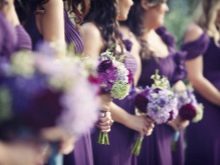 La núvia pot triar un bonic i magnífic vestit en una tonalitat blanca clàssica. I com a detall brillant, podeu portar un cinturó porpra per combinar el color escollit del casament. O podeu triar un vestit blanc amb brodats d’una tonalitat determinada, o un mantell clar de morat pàl·lid. Però no heu de portar completament un vestit d’aquest color, ja que es considera un mal averany.