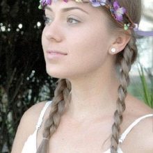 A més, la núvia pot estar bé amb un vestit blanc, però al mateix temps posa un accent brillant a la seva imatge amb l'ajut d'un pentinat. Els cabells es poden picar amb unes cabelleres boniques i brillants amb colors artificials o vius.