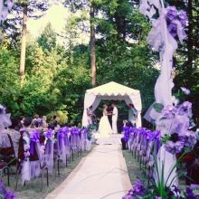 El color violeta significa saviesa, amabilitat i amor. Aquesta ombra té una energia sorprenent i molt forta. Diuen que només els autèntics líders que confien en les seves habilitats i capacitats poden triar un color com aquest. Gràcies a l’energia especial, aquesta ombra ajuda a desenvolupar la intuïció i a aconseguir l’harmonia interior, per tant, en un entorn morat, tots els presents se sentiran còmodes, cosa que evitarà conflictes i disputes en el casament.
