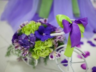 Podeu triar un ram de jacint o phloxes, perquè aquestes flors tenen un color molt ric i profund. Si les flors escollides són de color molt fosc i saturat, sempre les podreu ombrejar amb plantes blanques o altres plantes clares. La millor combinació és una solució blanc-violeta, perquè aquests rams semblen bonics i suaus.