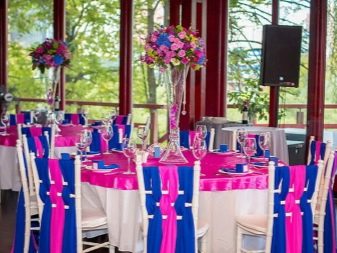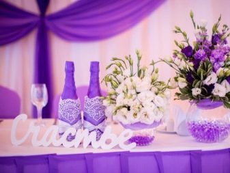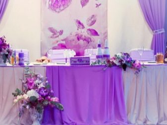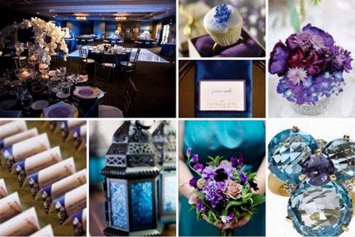 - Un casament en colors blau-violeta garanteix a tots els presents sentiments alegres. Els tons rics que dominen el disseny de la sala, la taula festiva i els accessoris individuals des del primer minut s’ajusten al clima desitjat.