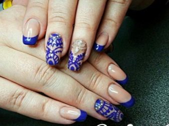 La manicura de la núvia ha de coincidir amb el vestit i el color del ram. Les puntes de les ungles es poden decorar amb vernís blau o es poden fer totes les ungles amb aquest to, complementant el disseny amb espurnes, pedres de pedreria o dissenys relacionats amb el casament.