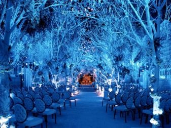 El casament, que se celebra a l’hivern, porta invariablement al tema del conte de fades de Cap d’Any. Per tant, és força adequat utilitzar-hi misterioses garlandes de color blau LED, espelmes, flocs de neu i ninots de neu.