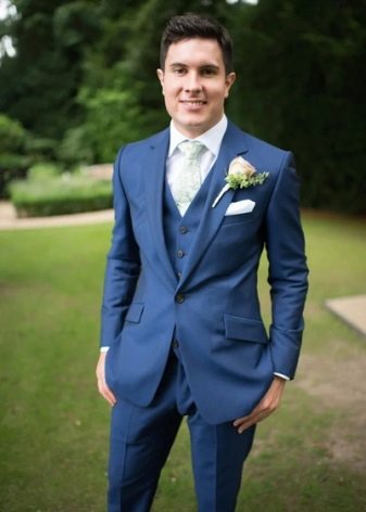 Si el casament té lloc a la vora del mar en la temporada càlida, un home pot fins i tot limitar-se a triar una camisa blanca amb armilla blava i corbata de la corresponent ombra.