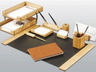 Parlant de motius naturals, no es pot ignorar el material d’oficina. Molts dispositius electrònics estan fabricats en estoigs de fusta; Sovint hi ha costers adequats. Tot això es pot complementar amb un cub ecològic característic.