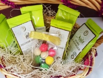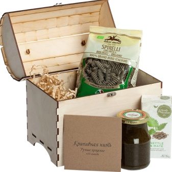 Pot ser una elecció gairebé universal regals dolços; sovint es marquen amb logotips o salutacions breus. No necessàriament es limita a la xocolata: el pa de gingebre no serà pitjor. Es té en compte una bona idea botigues de queviures. S’apilen en caixes de cartró ordinàries i en calaixos de fusta o contraplacat.