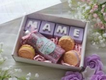 Una altra opció molt popular i popular és la presentació del Dia de la Mare. A les botigues hi ha moltes opcions per a aquests regals ja preparats: