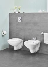 - Euro Ceràmica. Aquesta col·lecció inclou els tipus de vàters penjats a la paret. No hi ha instal·lació al kit, sinó que es compra per separat per a la instal·lació del producte. Les mostres estan equipades amb un sistema especial que proporciona gairebé silenci, però al mateix temps el més potent poder d’aigua sense ruixar. Aquests sanitaris són de porcellana sanitària.