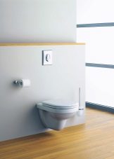 - Pis de peu. En aquest cas, l’estructura s’instal·la al terra. Les mostres de sòl es consideren el tipus més comú i universal d’aquest tipus de lampisteria. Es poden instal·lar fins i tot en habitacions petites. La instal·lació d’aquest disseny es pot fer fins i tot de forma independent. Però, al mateix temps, els models de sòl amb dipòsit són més exigents per a la neteja, en comparació amb les mostres penjades.