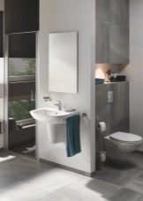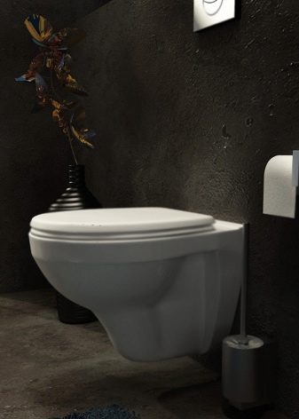 - Fora de fora Els lavabos compactes ocupen un espai mínim al bany, de manera que sovint se situen en banys amb una àrea petita. La instal·lació d’aquest disseny es realitza sobre revestiments de paret mitjançant accessoris metàl·lics especials. La instal·lació d'aquest tipus de fontaneria sense tanc està ben fixada en diversos llocs mitjançant cargols i cargols especials. Un model correctament instal·lat serà capaç de suportar el pes de fins a 400 quilograms. Els models en suspensió, malgrat les petites dimensions i la instal·lació de frontisses a la paret, són estructures força fiables i robustes. Poden suportar fàcilment 300-400 quilograms.