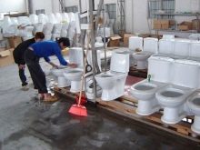 Això va després de l’assecat de l’estructura, que sol trigar unes 36 hores en condicions a l’aire lliure. El següent pas serà assecar en un armari especial (triguen 12 hores). Com a resultat, la superfície del producte es polia acuradament, s’elimina tota la pols i els materials residuals amb un raig d’aire comprimit. En la majoria dels casos, pinten un bol-monòlit de vàter manualment. En rares ocasions s’utilitza tecnologia robòtica per a això. Les estructures acabades es llencen en un forn a una temperatura de +1167 graus durant el dia.