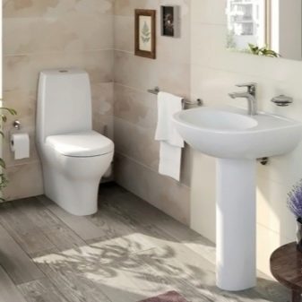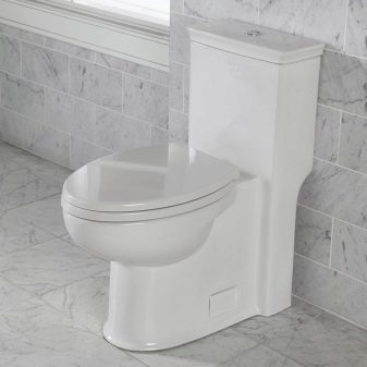 - Per la seva configuració i configuració, aquests models de vàter són el més senzills i senzills possible. Els principals són només dos components: un dipòsit i un bol, que són un sol tot. A causa de la senzillesa del disseny per a aquests productes, els consumidors no han de comprar altres elements necessaris.