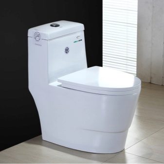 - Color i disseny. No ens hem d’oblidar del disseny d’un vàter monobloc. La fontaneria s’ha de barrejar harmònicament al bany. A la venda podeu trobar dissenys de diferents estils, de manera que els clients tinguin l'oportunitat de triar la millor opció per a conjunts de qualsevol manera. El color estàndard és el blanc (s’adapta fàcilment a qualsevol entorn), però podeu trobar un model més original, brillant o negre.