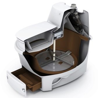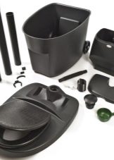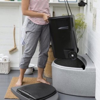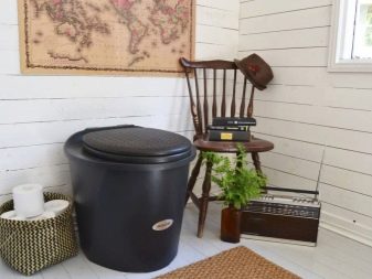 Pel que fa a les funcions de disseny, hi ha opcions amb equips de venda simplificats, així com productes amb una gamma completa de funcions addicionals. En el primer cas, el vàter de torba consistirà en una galleda amb seient, en algunes variacions senzilles es pot utilitzar una bossa d’un sol ús en lloc d’una galleda, que també es descomposa al sòl. El preu d'aquest bany de país serà el més assequible.