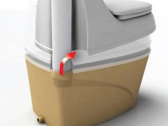 A més, s'utilitza certa part de les aigües residuals en forma líquida a causa de l'evaporació a través del tub de ventilació en els models en què es proporciona aquest component. El líquid restant passa pel filtre, després del qual es drena de forma purificada a través d’una mànega especial.