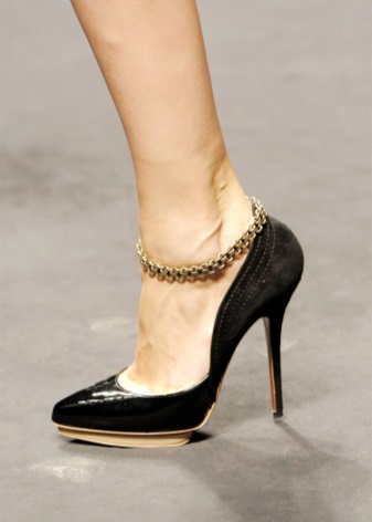Entre els elements decoratius populars de les sabates, no es pot passar per alt les cadenes metàl·liques que adornen les vores del producte. Però a l’hora d’escollir un model d’aquest tipus, cal parar atenció a la fixació d’aquesta cadena: el millor és que estigui cosida, ja que la cola es pot assecar prou ràpidament i la decoració simplement caurà.