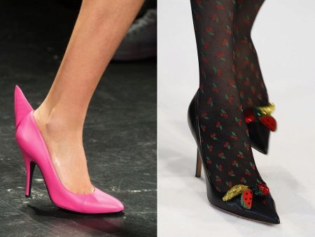 Les sabates amb un dit punxegut encara no estan de moda. Els models amb tirants de turmell introduïts per Saint Laurent i Nina Ricci tancaran la sabatilla a la cama i proporcionaran confort durant la caminada.