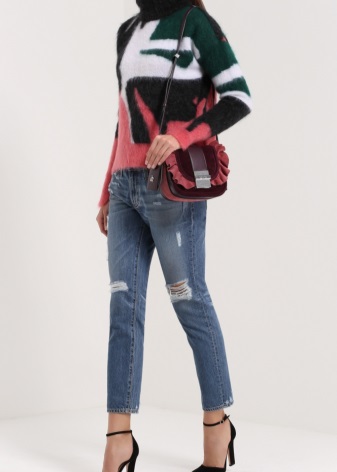 Per fer que les sabates de gamuza formin part de l’opció quotidiana, heu d’agafar un element semblant estilísticament a ell: bosses, cinturons, joies de cuir, nubuck o velour.