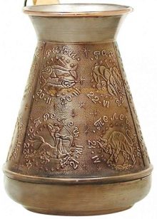 - Coll estret del dipòsit. Els turcs de coure per al cafè tenen el coll més estret, la qual cosa és un avantatge indiscutible.El coll estret es recobreix ràpidament amb una escuma de cafè, que permet estalviar tots els olis essencials de l'evaporació.