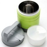 - Un termo alimentari d’acer inoxidable consta de diversos vasos, apilats els uns dels altres, s’assemblen a més plaques, cosa que significa que és molt més fàcil rentar-les.