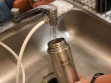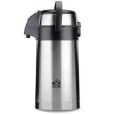 - Els termo amb bomba pneumàtica permeten abocar líquid sense capgirar el dipòsit. És fàcil rentar aquest recipient a mà, però caldrà fer esforços per blanquejar la bomba d'aire.