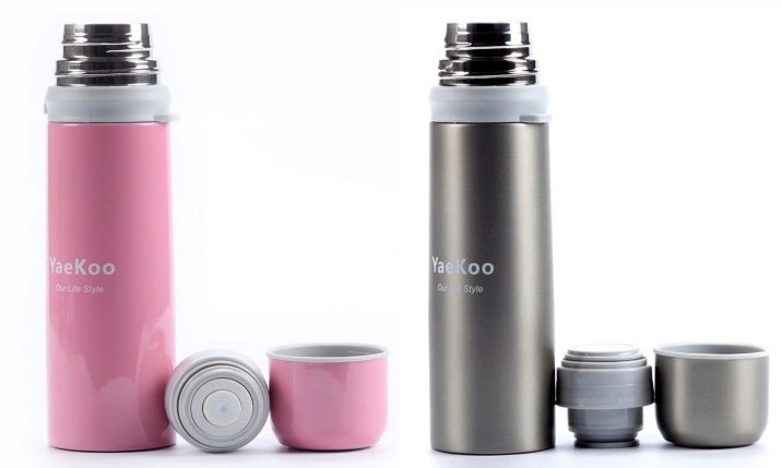 - Els termos per a begudes es produeixen amb un coll estret, el diàmetre dels quals és de 25-55 mm. Per a la neteja, definitivament necessitareu un raspall de plat.