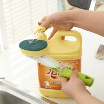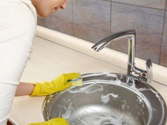 - La manera més senzilla: prendre una esponja ordinària per rentar plats i sabó de roba. Cal esbandir la pica amb aigua tèbia, sabonar l’esponja amb sabó i netejar completament en moviment circular tota la superfície de l’aigüera. A continuació, esbandiu-la amb aigua neta.