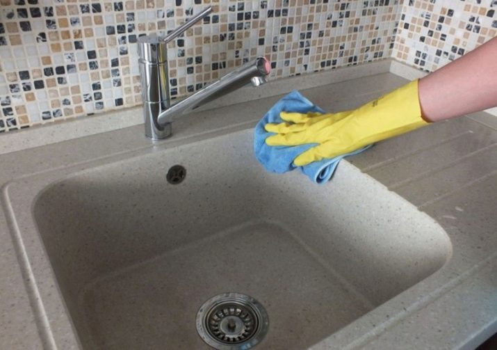 Una pica de pedra artificial lleugera es pot netejar bé amb productes domèstics a base de clor, com ara "Domestos". A més, les esponges populars de melamina s’adapten molt bé, fan un treball excel·lent per treure les taques de les superfícies.