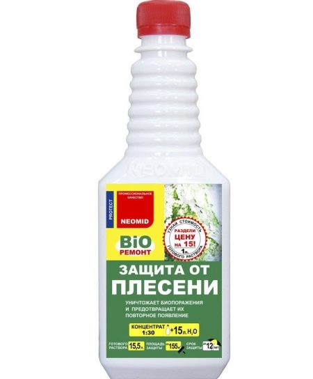 Un altre remei de motlle que els consumidors recomanen per a la compra és Neomid Bio. Realment elimina el fong, però, a jutjar per les ressenyes, té una forta olor desagradable. Com a segona opció, cal una habitació ben ventilada i equipament de protecció personal.