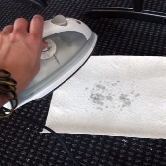 El peròxid d’hidrogen aplicat a la superfície amb un coixí de cotó eliminarà una mica de contaminació. Si el dipòsit és fort, haureu de posar el ferro a un drap submergit a una farmàcia i deixar-lo durant 2 hores. A continuació, planxa el teixit no desitjat amb un electrodomèstic calent. En lloc del peròxid, podeu utilitzar hidroperita comprimida. La base escalfada es frega amb pastilles. Per seguretat, utilitzeu pinces. Durant el funcionament apareixerà una forta olor repulsiva.