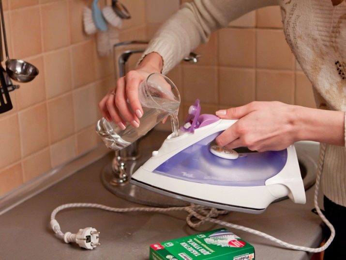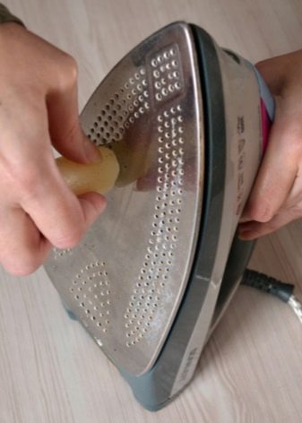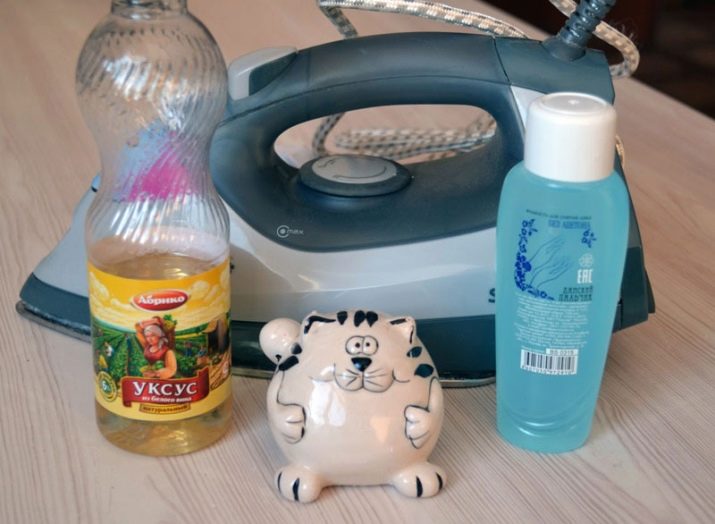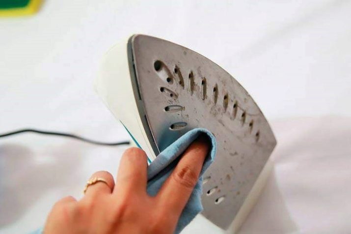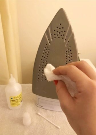- També es pot fer servir vinagre de la següent manera: impregnen draps innecessaris, plegats en diverses capes. El ferro s'escalfa a una temperatura màxima, s'apaga i es deixa a la tela. Després del refredament complet, la base es neteja amb un drap suau i sense pelussa. Les nits de vapor es poden netejar amb brots de cotó o escuradents.