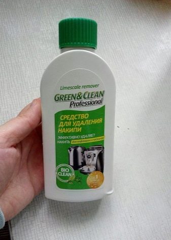 Verd i net - una eina basada en àcids naturals naturals. Fórmula única Bioklean Es desenvolupa sobre la base d’aquests àcids. Green & Clean es dissol lentament i elimina l'escala, deixant la superfície del ferro intacta. Té un efecte de neteja i desinfectació de l’aparell. El producte té un color transparent i una olor suau.