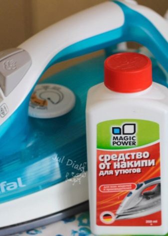Per netejar l’interior de l’aparell "Antinakipin". El contingut de l’ampolla es dilueix en 200 ml d’aigua, s’aboca al dispositiu i s’encén. Quan s’ha escalfat, s’apaga i es posa el ferro a la base, al cap d’una hora o dues, s’escorre el líquid. Si després de rentar-lo amb aigua normal, queda clar que l’aparell s’ha netejat completament, es deixa el ferro en posició horitzontal una estona. En casos avançats, es repeteix el procediment amb "Anti-escala".