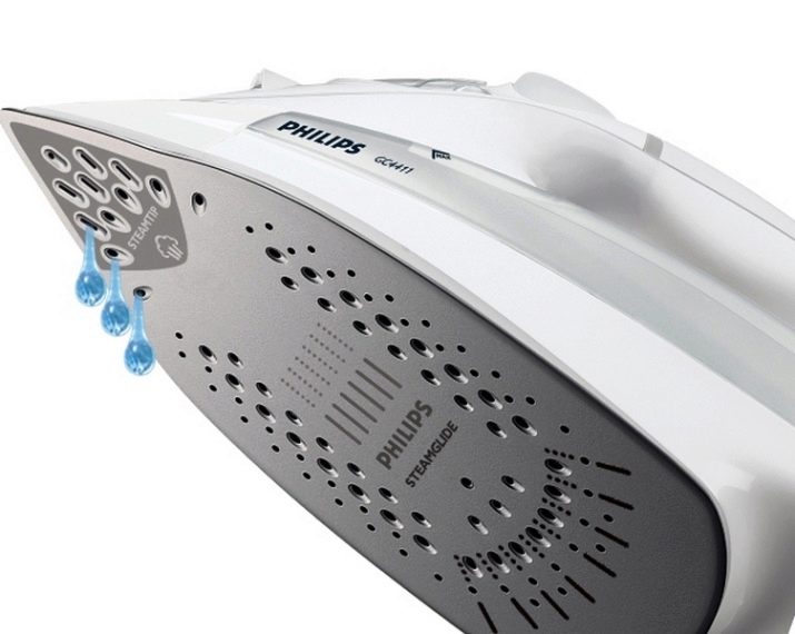 - Vapor de vapor - model durador de ceràmica o vidre. Aquesta opció és d’alta resistència, la sola llisca molt fàcilment al llarg de les fibres del teixit. Tota la zona de la sola està coberta de petits forats, cadascun dels quals té el seu diàmetre. El procés de planxa és el següent: el dispositiu no toca el material, sinó que es mou al llarg del coixí creat amb forats i vapor. Així, les coses es suavitzen perfectament.
