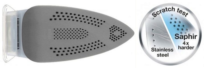 - Saphir - la placa té un aliatge de zinc, crom, alumini i níquel. Aquests metalls creen un recobriment extremadament durador i resistent als danys que s’assembla al safir en les seves propietats. Per millorar la qualitat de la sola, la seva superfície es processa amb encenalls de safir.