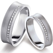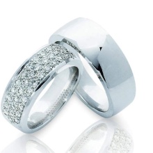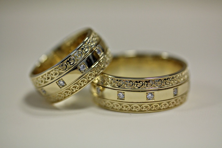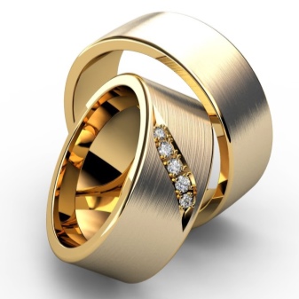 Els productes amb diamants es seleccionen aproximadament el 50% de les parelles. El motiu d’això és que no tots els homes accepten portar anells amb aquestes pedres brillants. Per a aquest cas, hi ha models amb decoració tallada o estucada.