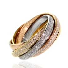 Els models d'estil dels clàssics francesos també demanen avui dia. Al 1924, la famosa casa de joies de Cartier va fer un sorprenent anell anomenat Trinity. Ha perdurat fins als nostres dies i és una veritable personificació de l’estil clàssic. Aquest popular model és un entrellaç d’anells prims d’or rosa, blanc i groc. Aquests elements representen confiança, fidelitat i amor.