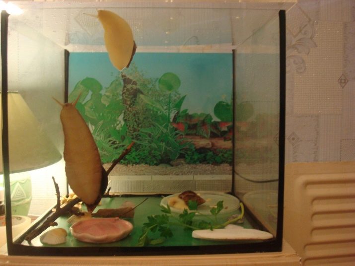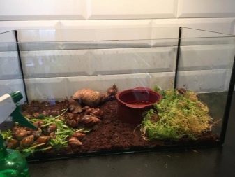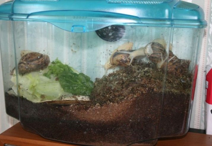 No podeu triar per als cargols una alternativa a l’aquari en forma de caixa de contraplacat o caixa de cartró. En qualsevol cas, les parets del contenidor han de ser llises, còmodes per a la seva neteja i manipulació.