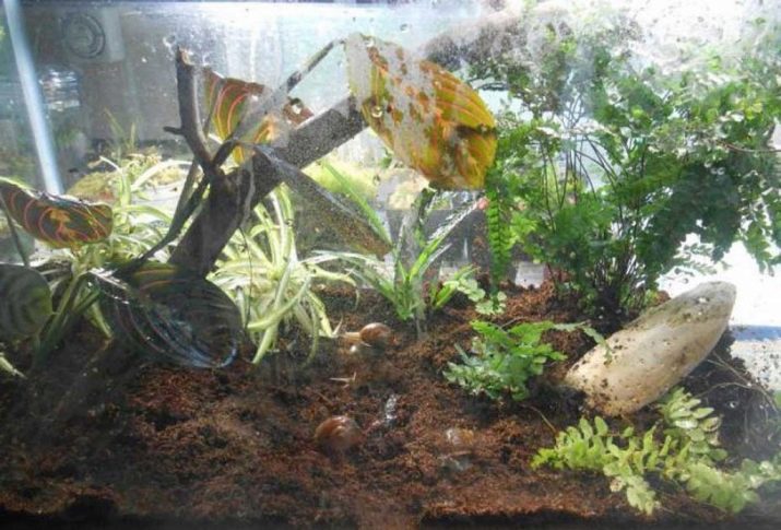 La millor decoració d’un aquari tropical serà la vegetació viva. Com a regal per als caragols, podeu plantar grans de blat o amanida. Els animals domèstics estaran encantats de menjar jove. Es poden plantar succulents amb tiges carnoses gruixudes, falgueres i tradescans al sòl. Són de forma diversa, tenen un aspecte espectacular, però no són d'interès nutricional per al caragol.